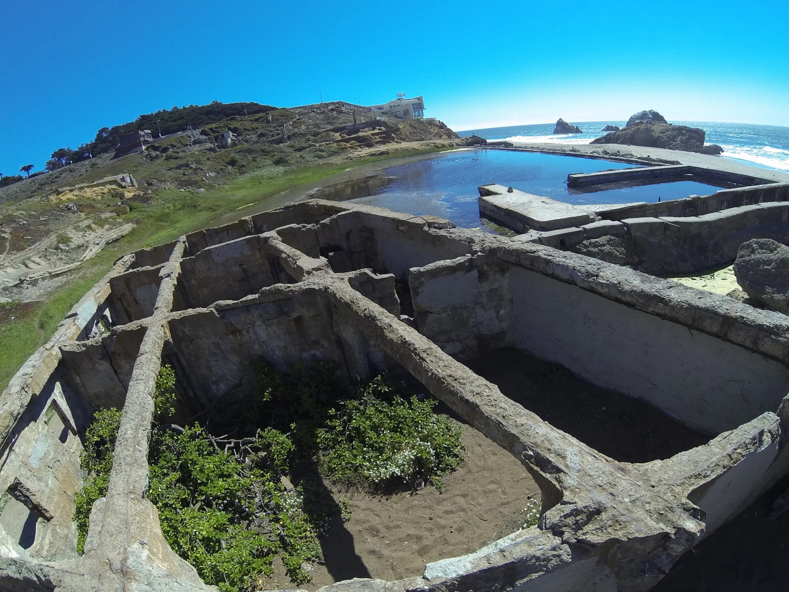 Sutro Baths was originally built in 1894 by Adolph Sutro, a wealthy entrepreneur and former mayor of San Francisco. It was a grand vision – a public bathhouse with seven pools of varying temperatures that could fit 10,000 people at a time, covered in glass and housing natural history exhibits and classical artwork. The surrounding area included Sutro’s Cliff House and a beach boardwalk, where families would come in on trains to enjoy a fun weekend by the beach. Sadly, Sutro Baths was too expensive to maintain in the long run, and after being sold to a group in the 1960s to develop into a high-rise complex, the buildings burned down in a fire.