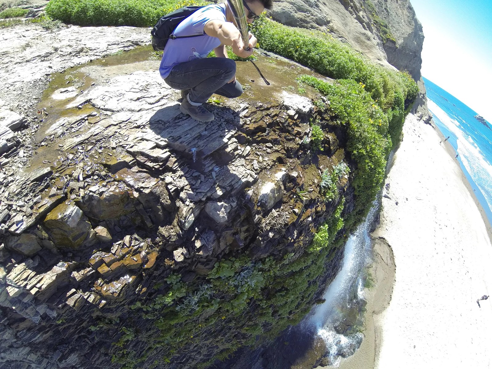 By now we had hiked over 4 miles, so we took a quick break to catch our breaths (and also figure out how to find one of our group members who had gone ahead of us and hadn’t returned). We made our way to the area near the top of the waterfall by climbing down some rock structures. Two smaller waterfalls splashed softly to the right of us into clear springs filled with plenty of plants. The top of the waterfall was on the other side, so we walked over, peered over the edge, and enjoyed the beach and ocean view beneath us as we took a lunch break.