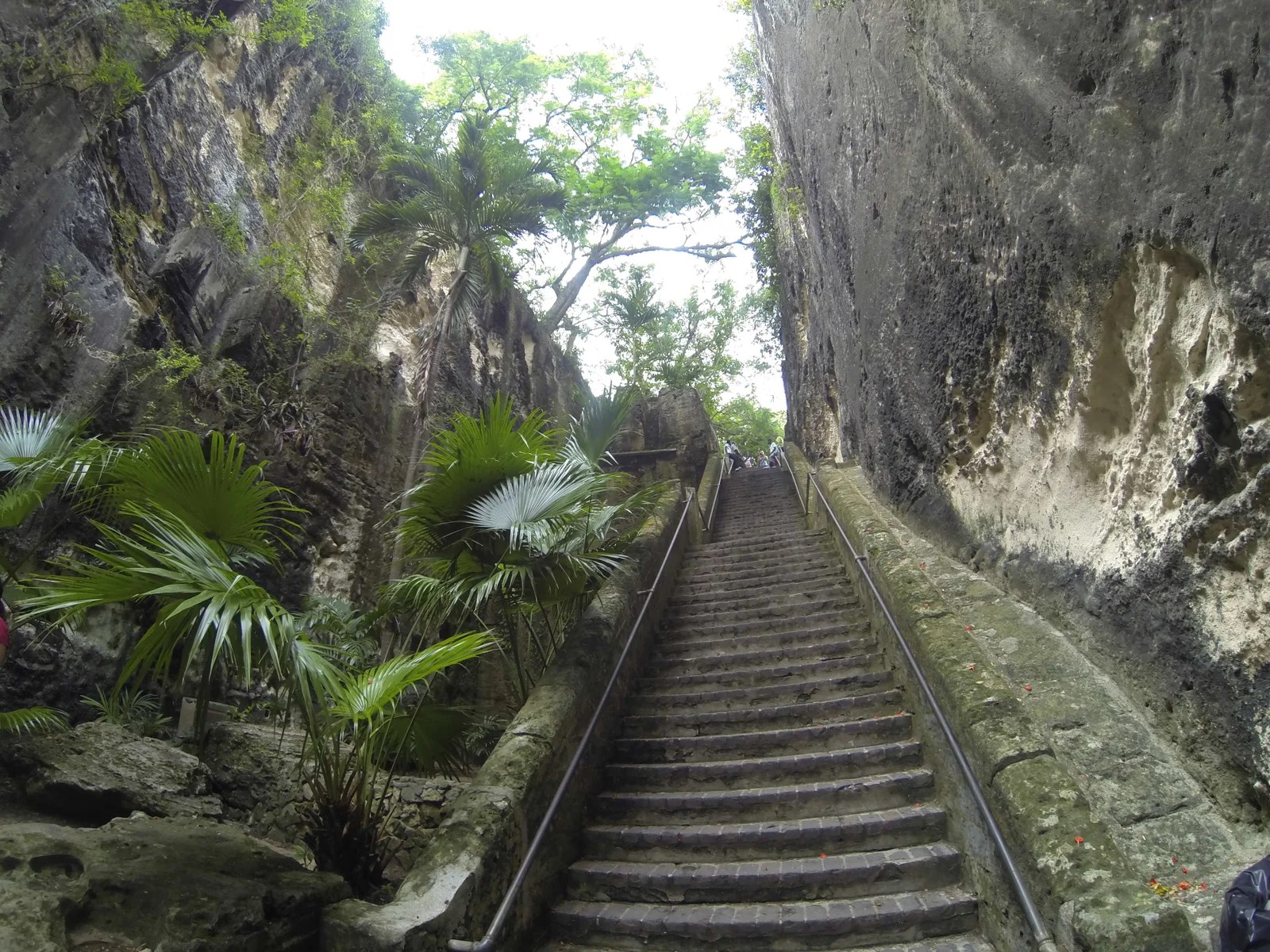 Our tour guide resembled Carlton from the Fresh Prince of Bel-Air, wearing green pants and sporting a Bahamian English accent (think softer Jamaican accent). We drove around the entire city, passing by government buildings, rich neighborhoods, poor neighborhoods, and everything in between. Our first stop was at Fort Fincastle, a fort built to protect against pirates – Nassau was the pirate capital of the world in the 18th century. Walking to the top-most portion of the fort gave us an impressive view of the city, with cannons below us overlooking a lot of greenery and buildings. We also walked on the Queen’s Staircase, 66 steps carved by hand next to the fort, before making a quick stop at the famous Atlantis resort.