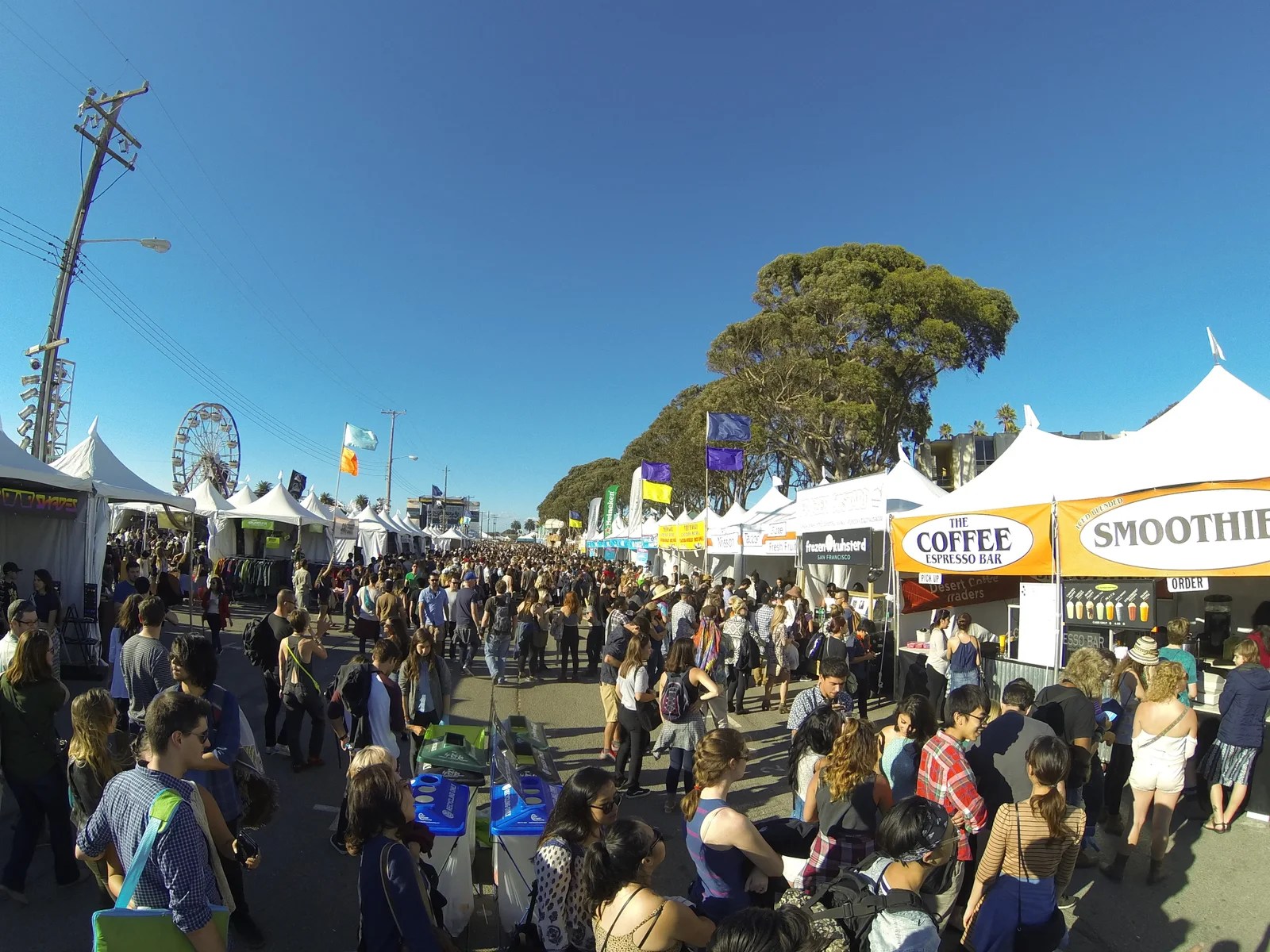 Saturday was a beautiful and sunny day in SF, so I knew that the weather would be similarly great at Treasure Island. I met up with Jay and Michael for lunch and we arrived at the Bill Graham Civic Auditorium to catch the free shuttles running constantly from the city to the island. The lines weren’t very long and soon enough we were at the entrance of the festival.