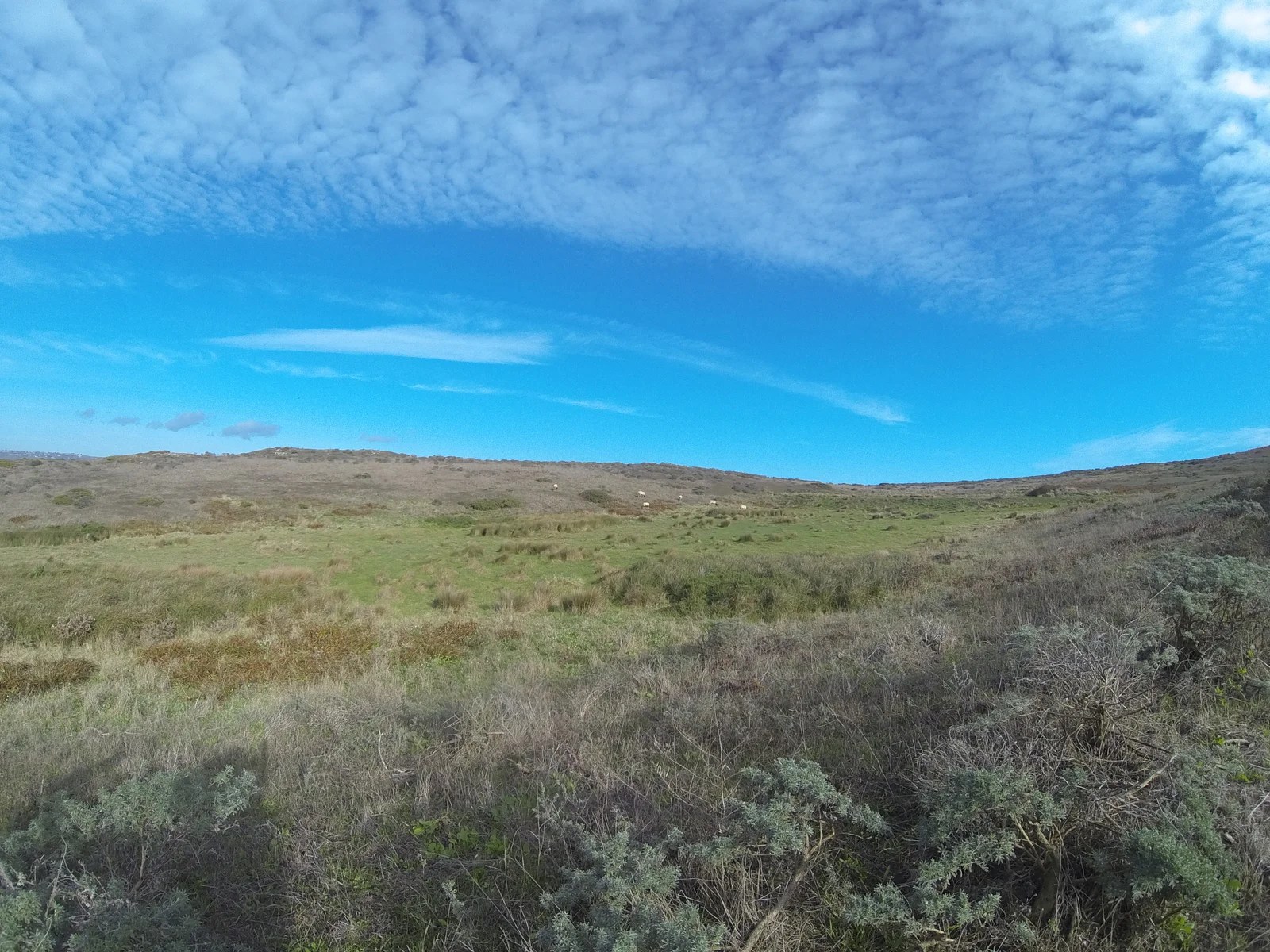 We hit the trail close to noon and immediately noticed the calm, windswept terrain surrounding us. This trail was definitely a coastal trail, with no tall trees or vegetation, just rows and rows of grass, sand, and shrubbery. On several points of our hike, we spotted the famed tule elk herds inhabiting the area, including bulls with huge antlers resting peacefully on the plains.