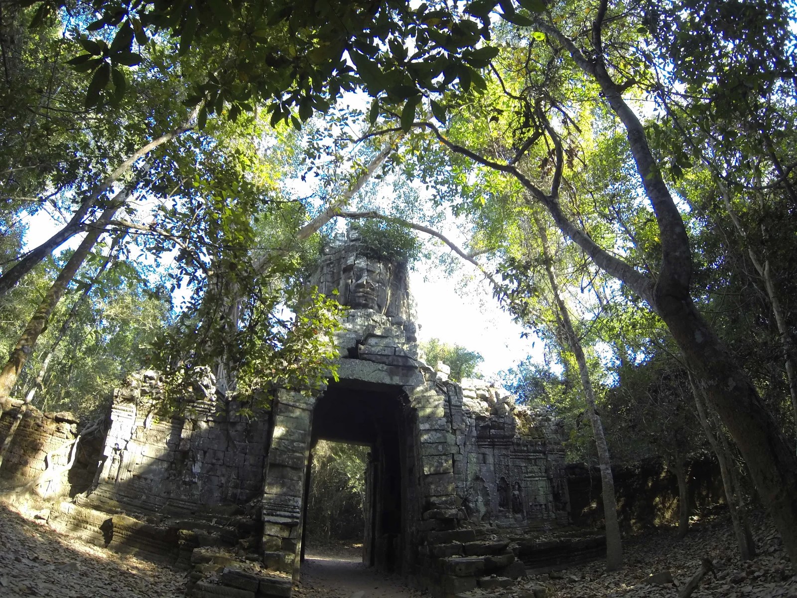 Today was the day. We’d booked a special tour for Angkor Wat several months in advance at a friend’s recommendation, and we met our guide Mr. Sok Som at the crack of dawn, 5 am sharp outside our hostel. It was still dark as we bounced along the road in our car toward the ancient temples, and along with several other folks from the US, we stepped out into the chilly early morning air as the guide led us through the dark into the ancient Angkor Thom complex of buildings and temples.