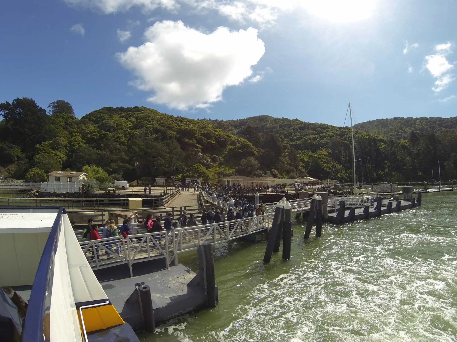 As the ferry departed, we grabbed some seats outside on the top deck. It was an insanely nice day – the sun was shining, the breeze was refreshing, and the views of the Bay were lovely. We sailed by Alcatraz as the city continued to grow smaller in the horizon, and soon a large, tree-covered island appeared into view.