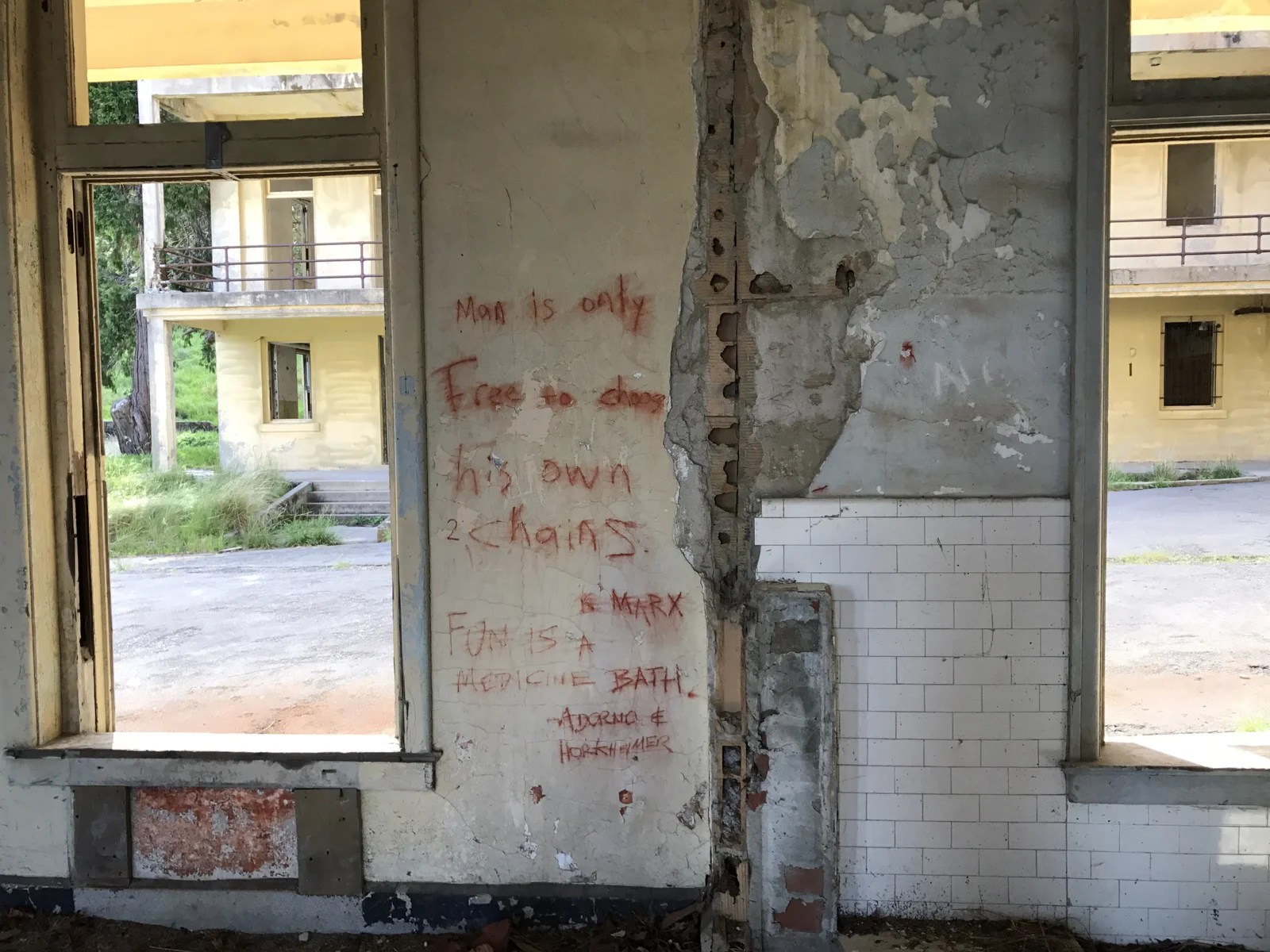 The scenery continued to impress. We were surrounded by views of the bay, sailboats and container ships dotting the waters. The walk wasn’t too difficult, with a few uphill climbs but largely flat terrain. We walked past the US Immigration Station, a group of buildings that processed almost a million immigrants from 1910-1940.