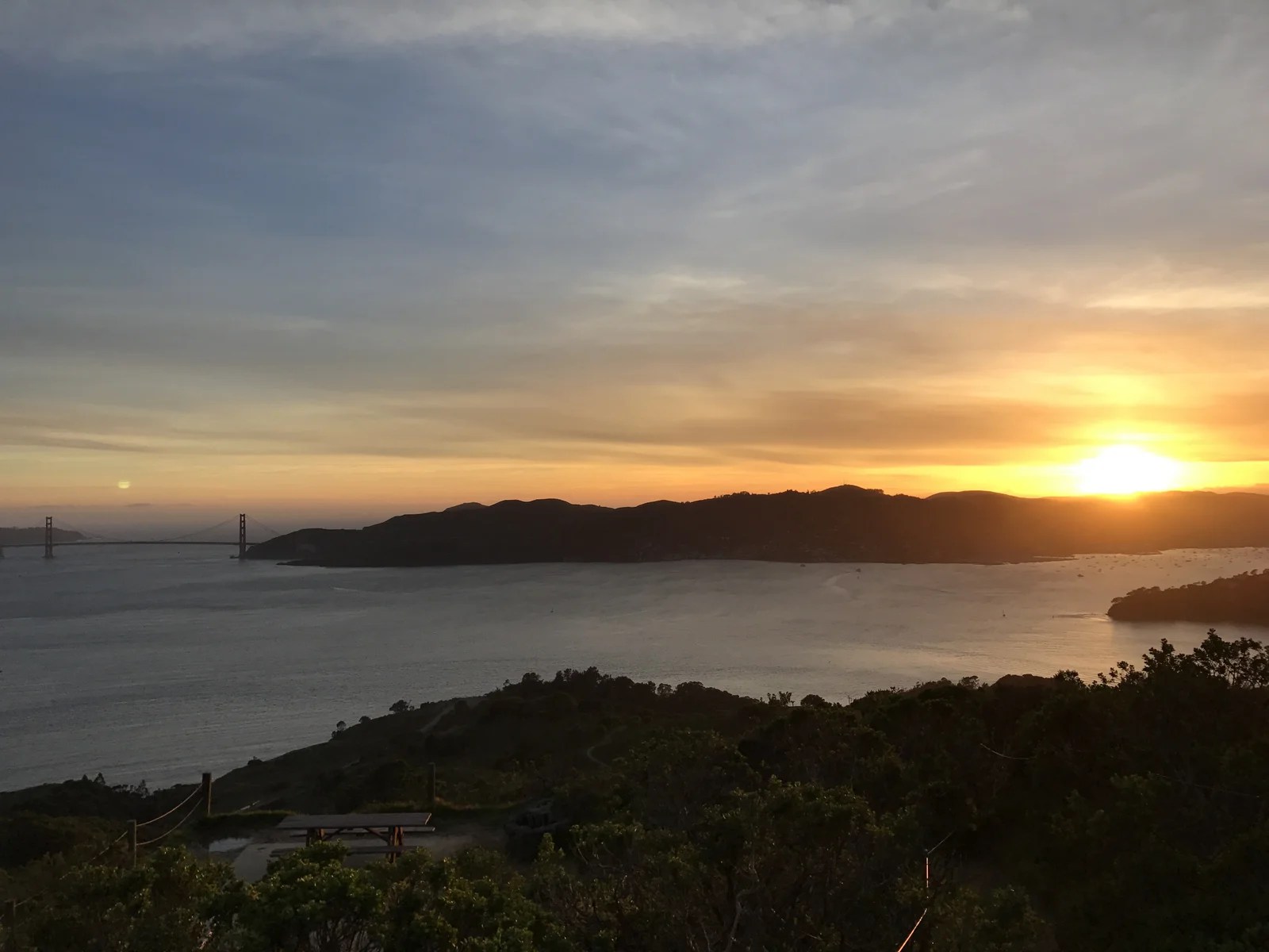 The crew reached the top just as the sun began to dip behind the hills. We were awestruck – the views were absolutely incredible, covering East Bay, San Francisco, and Marin. We continued to admire the view as the sky darkened and the city lights began to glimmer.