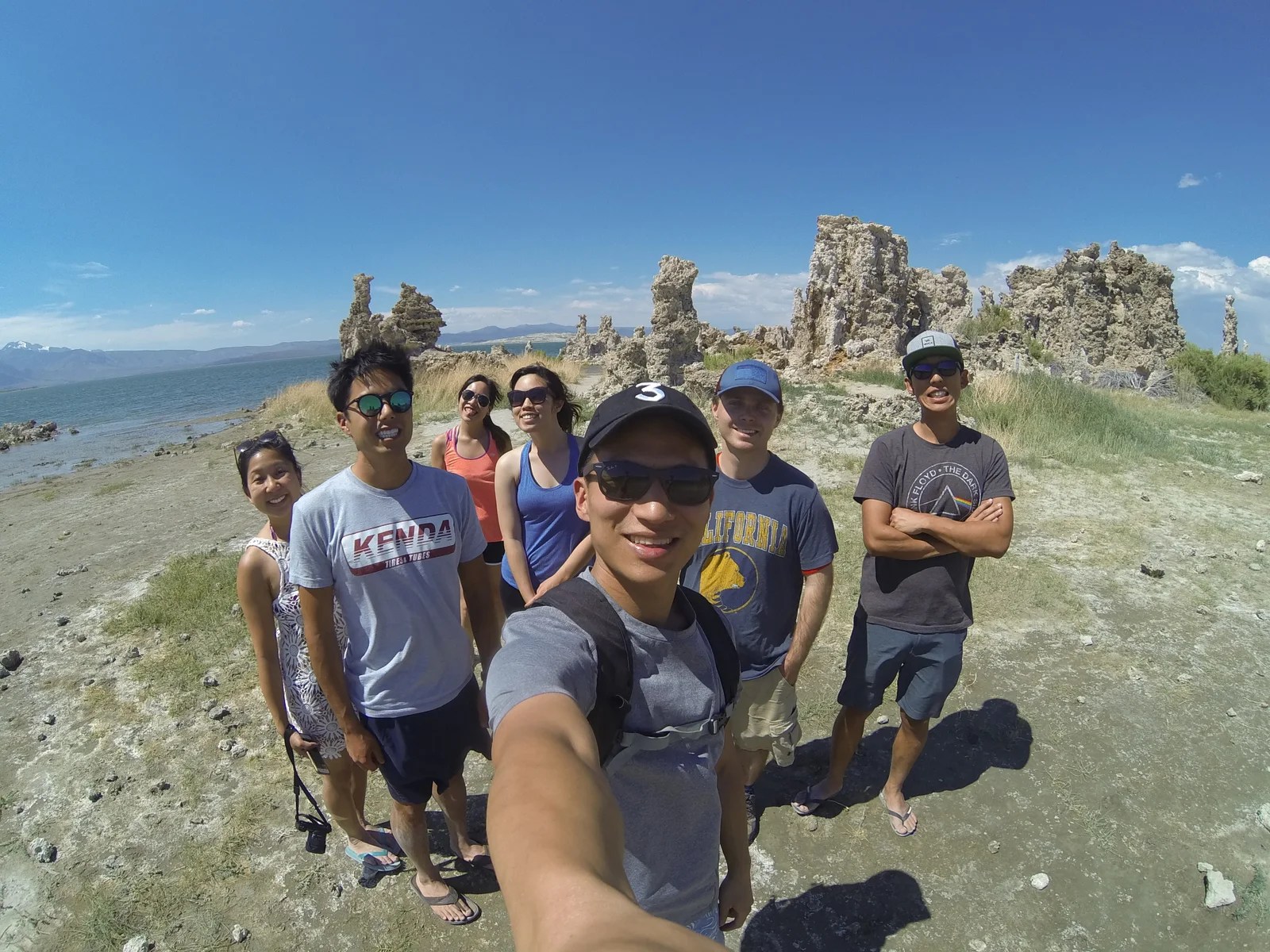 The next day, our crew continued the adventures, stopping by Panum Crater, an old volcano, in the morning to look for obsidian rock. We drove back through Tioga Road in Yosemite, leisurely stopping at several lookout points. At Tuolumne Meadows, there was still fresh snow, so we had an impromptu snowball fight.