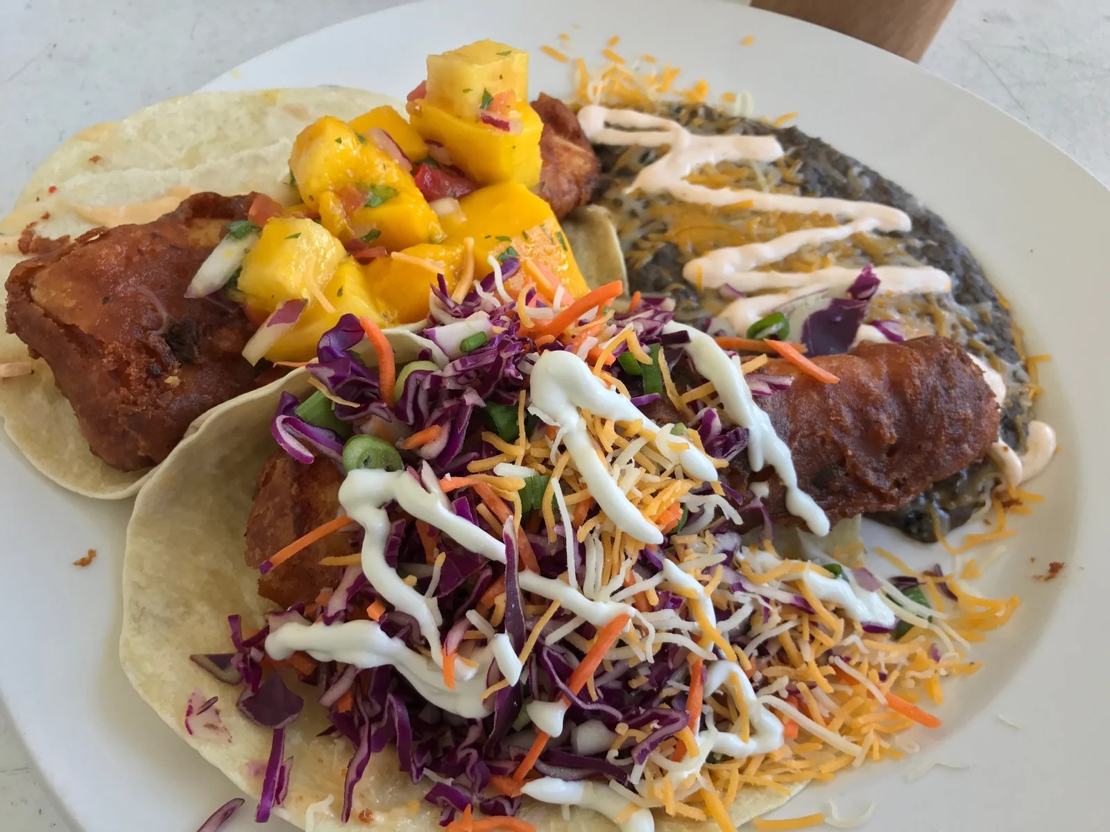 Feeling refreshed, we continued our drive and arrived at our lunch destination in Lee Vining just outside the east entrance of the park. That’s where the famous Tioga Gas Mart & Whoa Nellie Deli is located. As we stepped into the deli teeming with park visitors, I spotted their “world-famous” fish tacos on the menu. Although initially skeptical, I was blown away by how fresh the fish tasted. The mango and slaw salsas were also incredible!